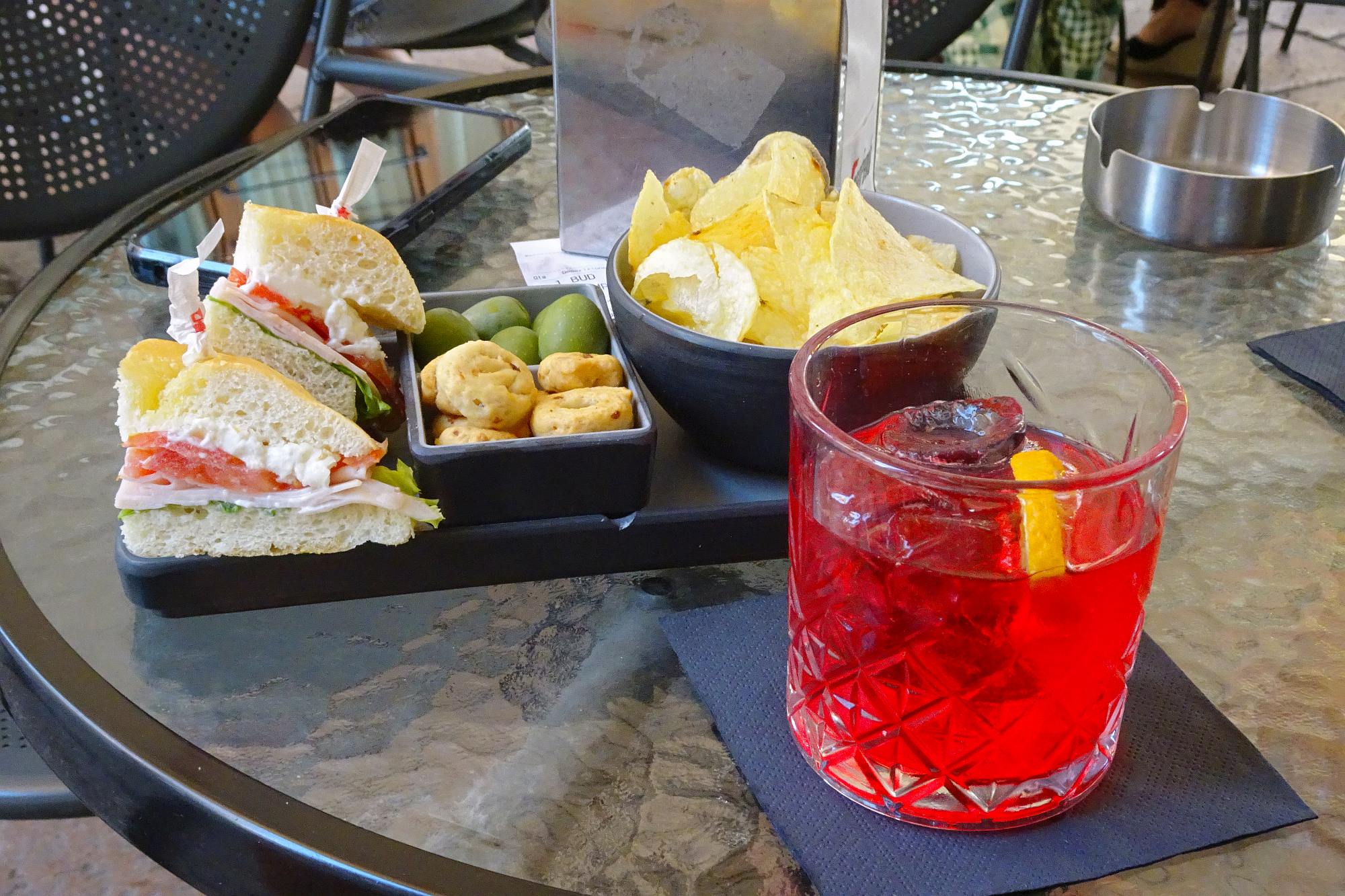 Erst am Capo Testa wurde es etwas gemütlicher. Der Wind in Küstennähe machte die Sonne erträglicher. Und vor allem: Es gab eine schattige Bar, zwar stilistisch kein Highlight, aber zumindest hatten sie dort kühle Getränke.