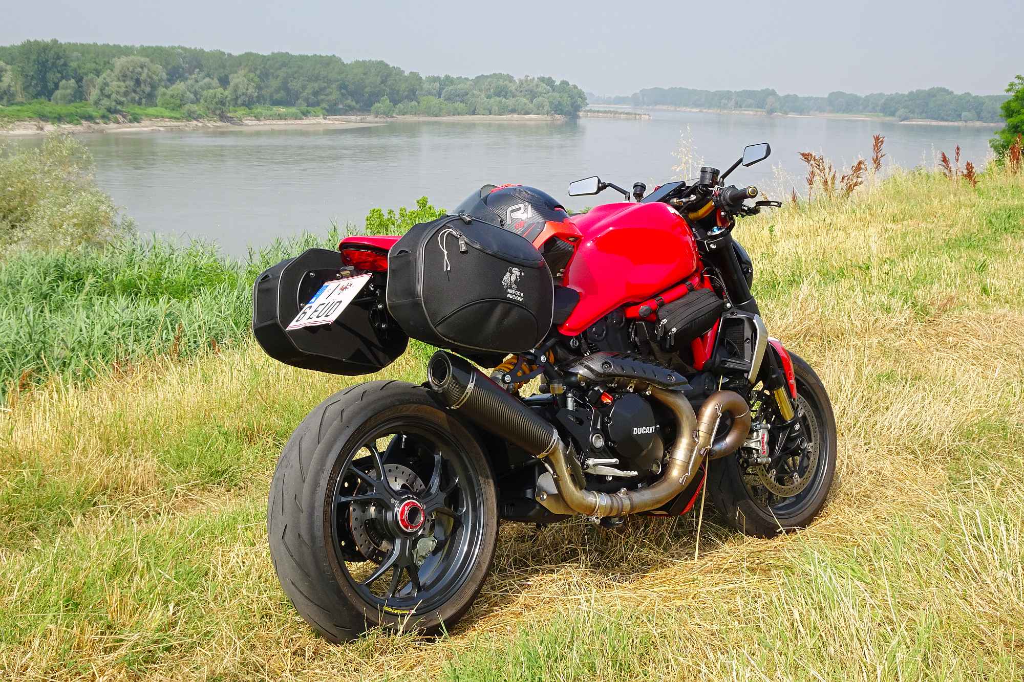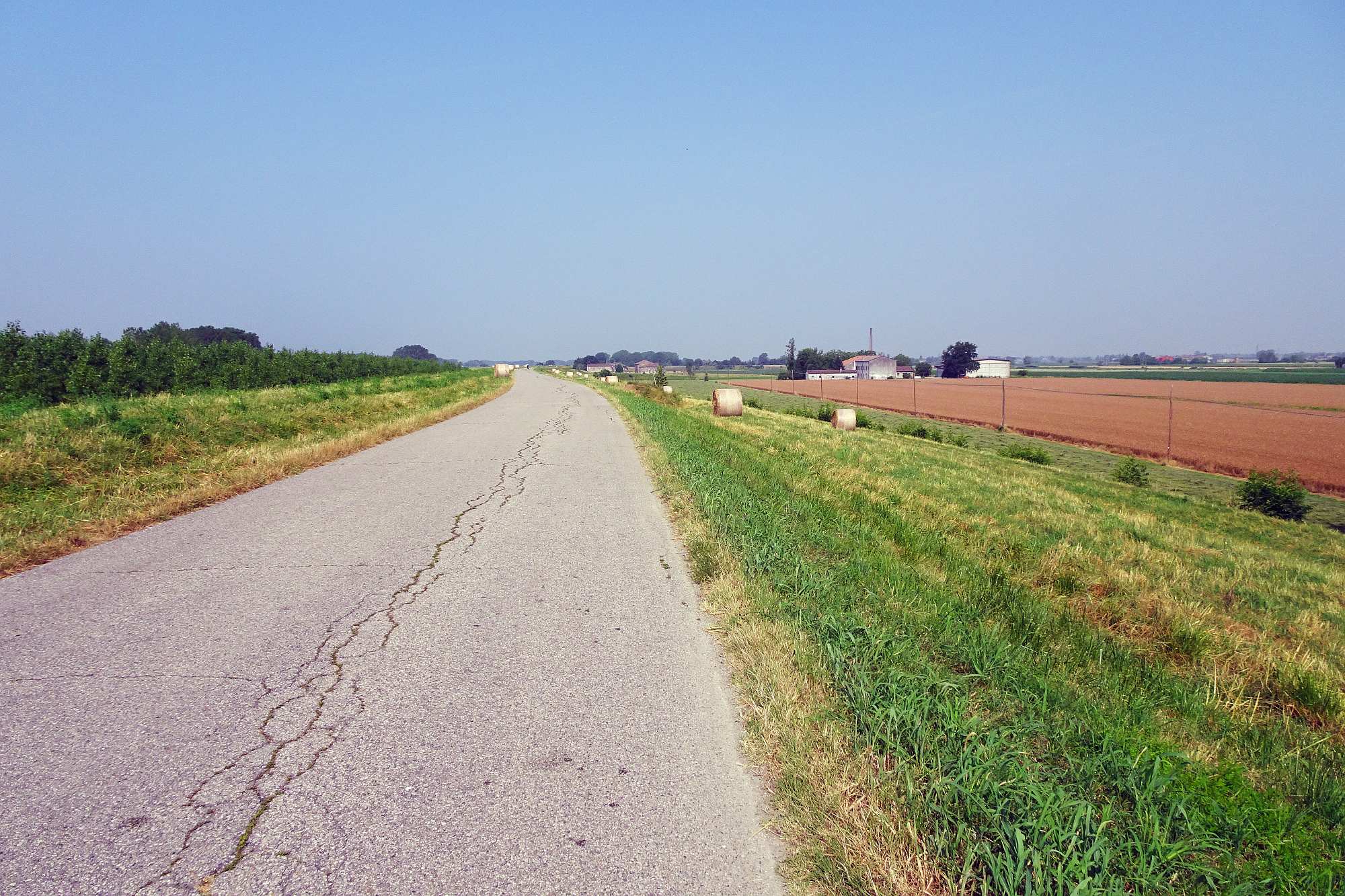Auf Nebenstraßen und Radwegen rollten wir eine Weile am Uferdamm des Po entlang – eine wirklich entspannende Gegend, wo man lieber luftig gekleidet und gechillt am Fahrrad als dick verpackt im Leder am Motorrad sitzen will.
