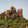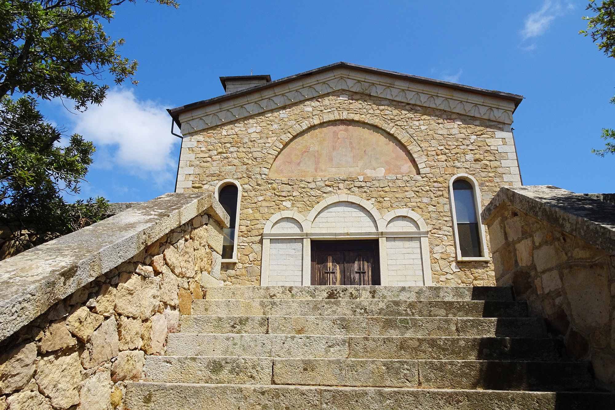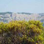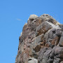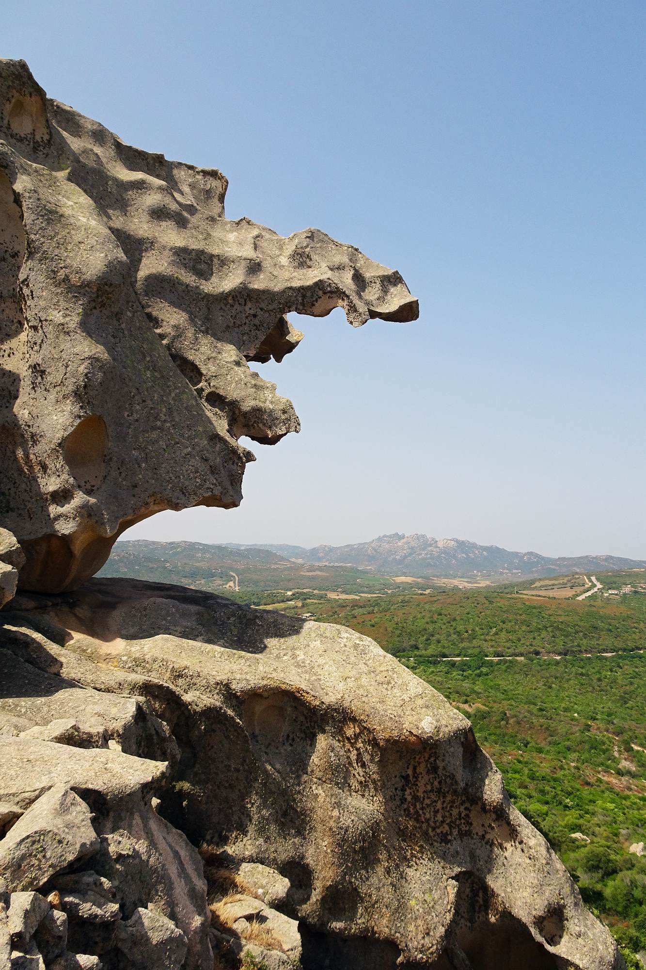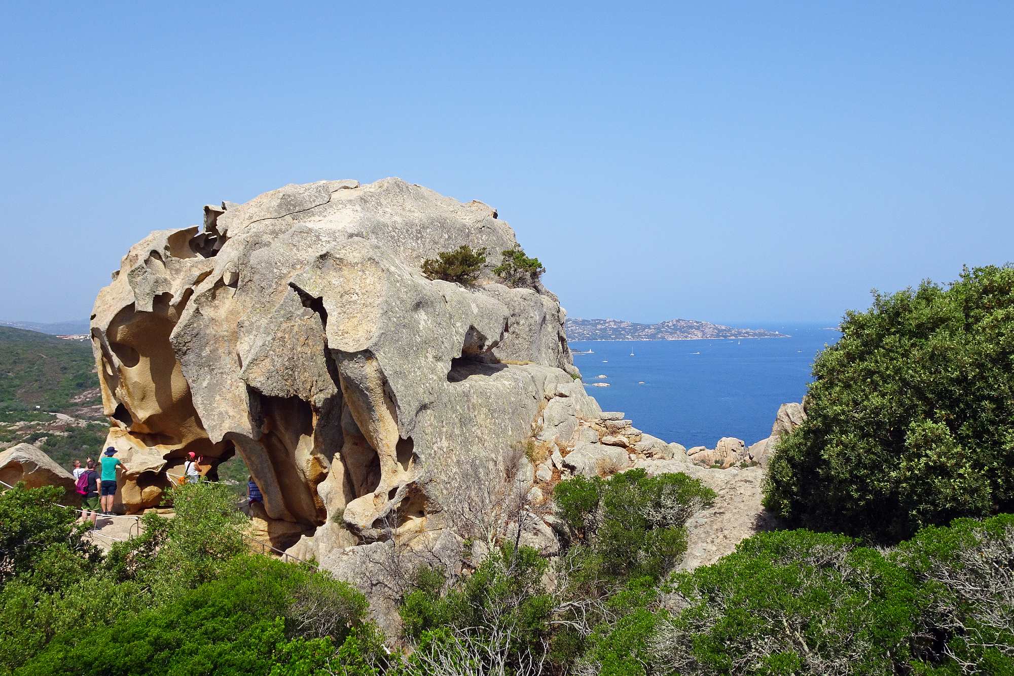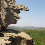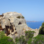 Recht zügig ging es zum Capo d’Orso, einer viel frequentierten Felsformation, die entfernt an einen Bären(kopf) erinnert. In Erwartung, dort oben gemütlich unsere Jause verzehren zu können, parkten wir die Motorrädr (2,50 EUR), bezahlten unseren Eintritt (3,00 EUR) und schwitzten uns die Rampe hoch bis zum Bärenkopf. Aber an eine Jause war dort nicht zu denken, zu heiß, kein Schatten aber dafür viele andere Touristen.