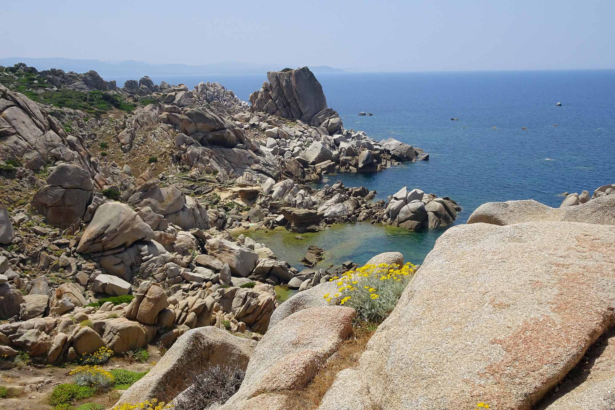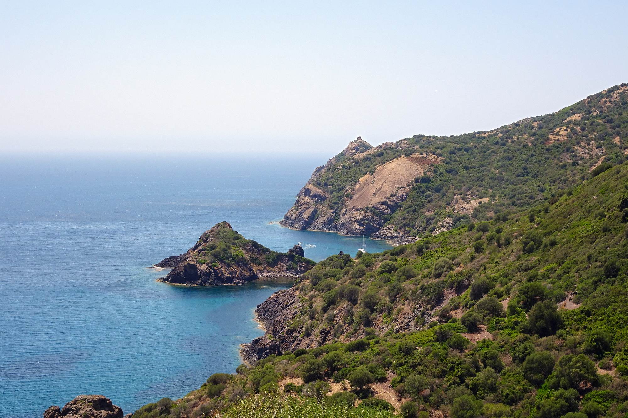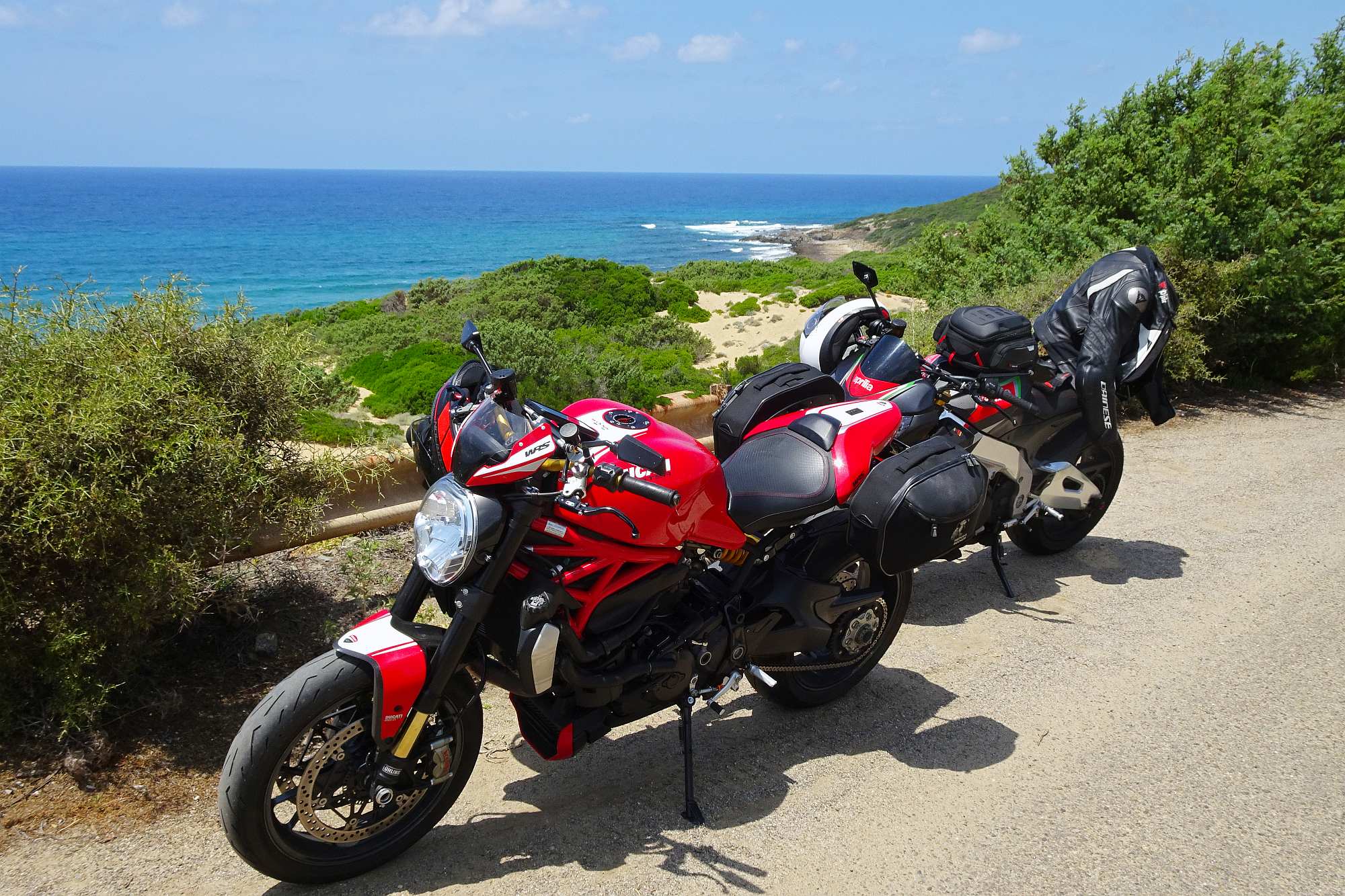 Die Fähre kam überraschenderweise erst gegen 9:00 in Olbia an. Und natürlich, kaum waren wir von Bord, war es schon wieder nahezu unerträglich heiß im Leder. Also machten wir uns schnurstracks auf den Weg an die Nordspitze der Insel.