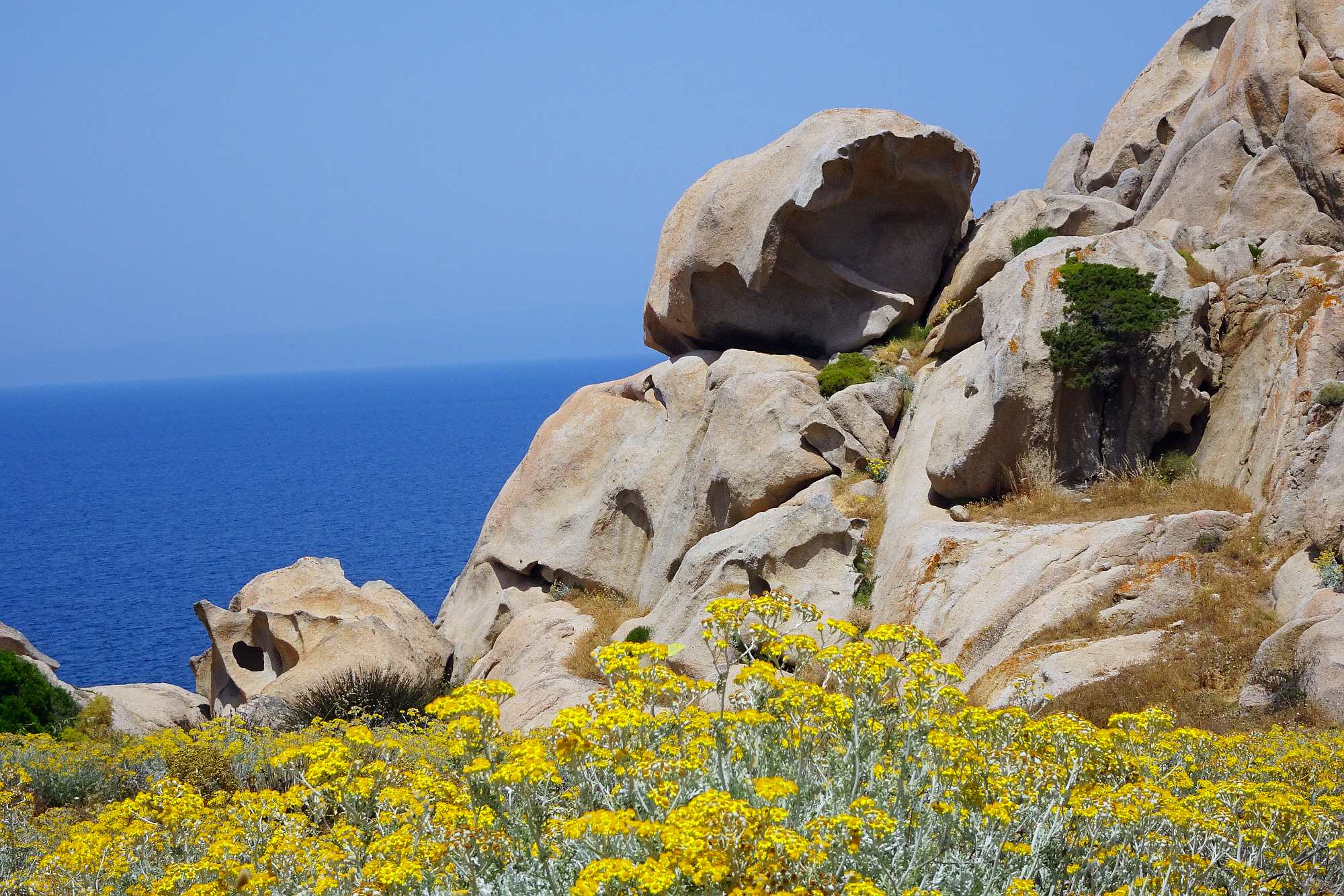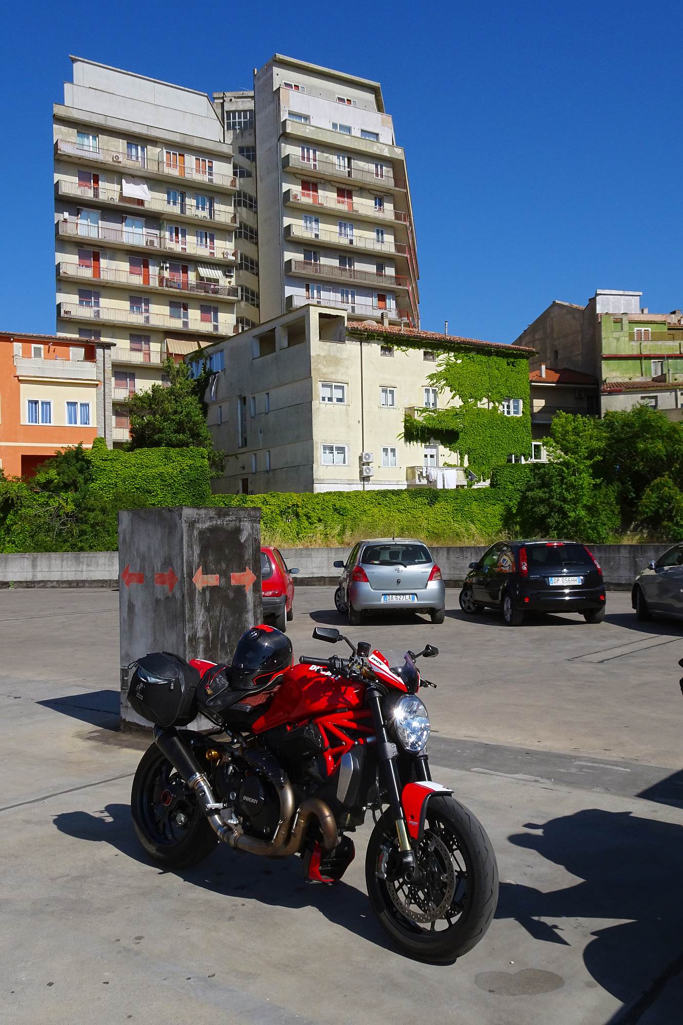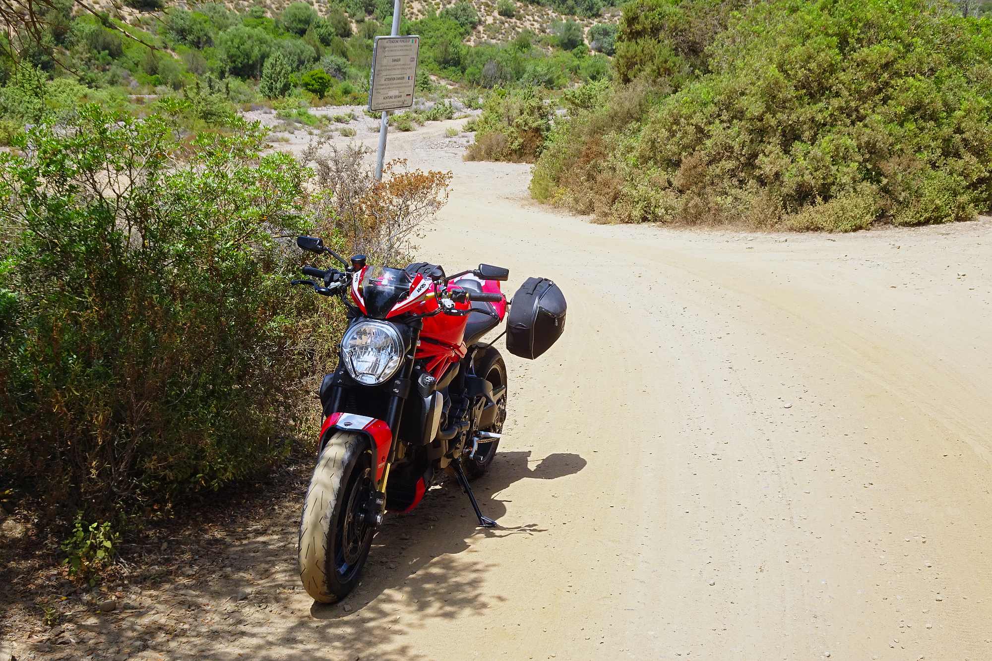 Die Fähre kam überraschenderweise erst gegen 9:00 in Olbia an. Und natürlich, kaum waren wir von Bord, war es schon wieder nahezu unerträglich heiß im Leder. Also machten wir uns schnurstracks auf den Weg an die Nordspitze der Insel.