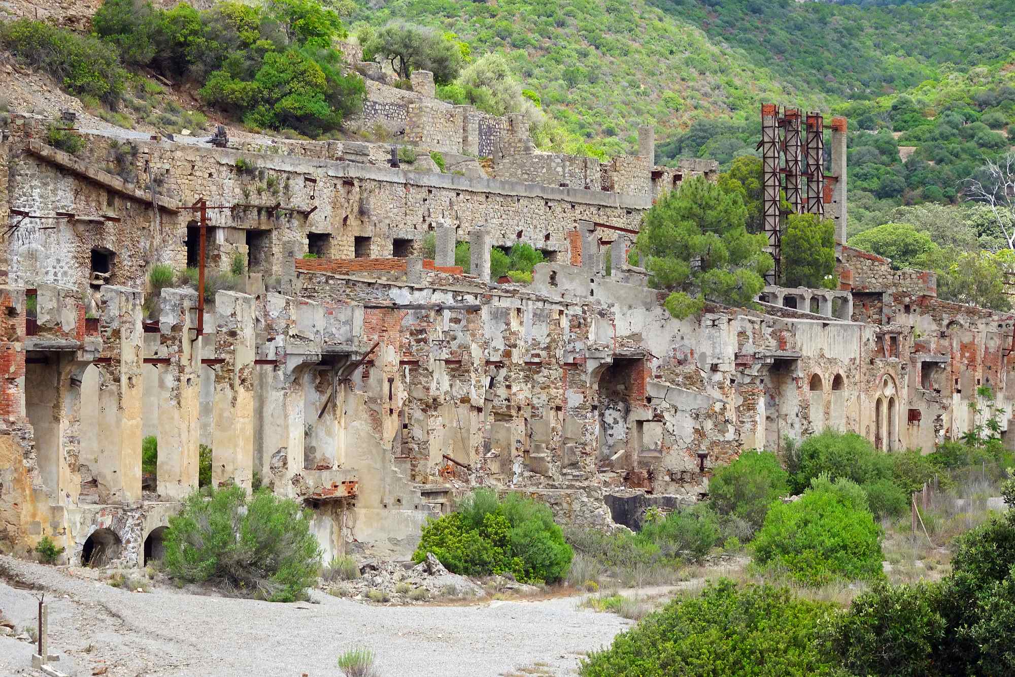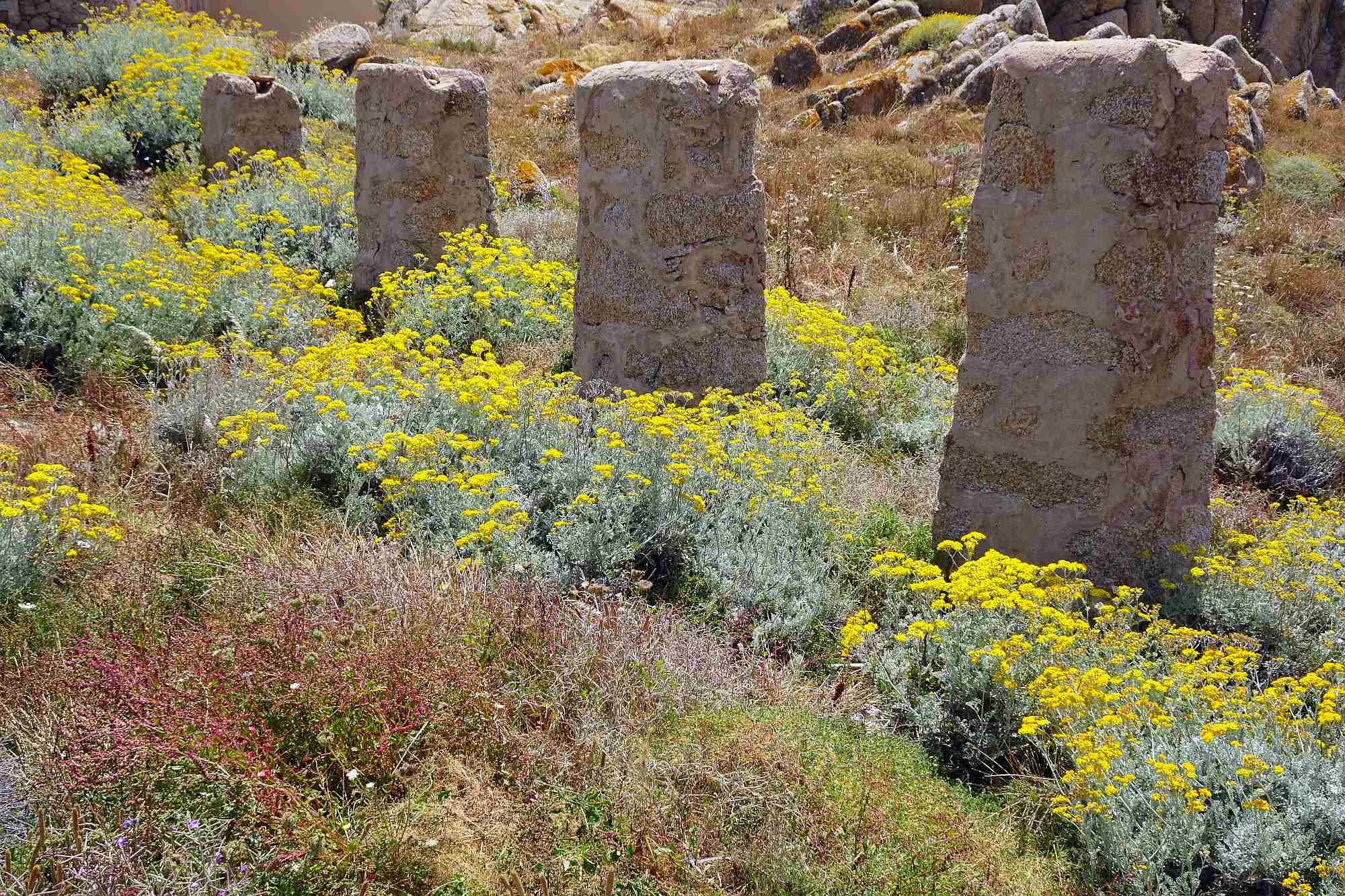 Also verließen wir die Gegend und machten uns auf zu einem Besuch der verlassene Bergwerks-Stadt Argentiera etwas weiter im Süden. Und hier begann es sich endlich so zu entwickeln, wie wir uns Sardinien vorgestellt hatten: kleine Straßen, kaum Verkehr, perfekter Asphalt und rundherum Macchie und felsdurchsetzte Küstenlandschaft. Zwar versprach auch Argentiera mehr, als es dann halten konnte, aber es war schön, endlich mal so unbeschwert durch die Landschaft zu gondeln.