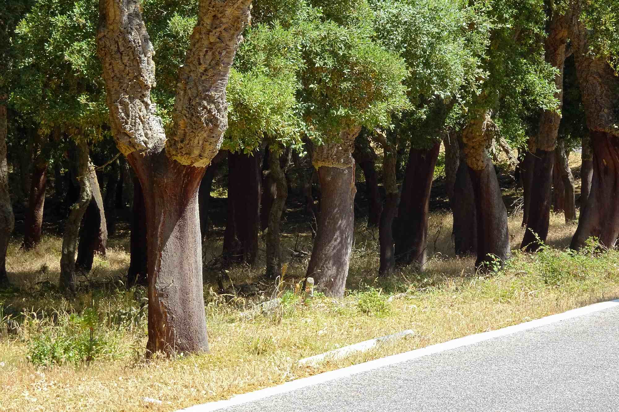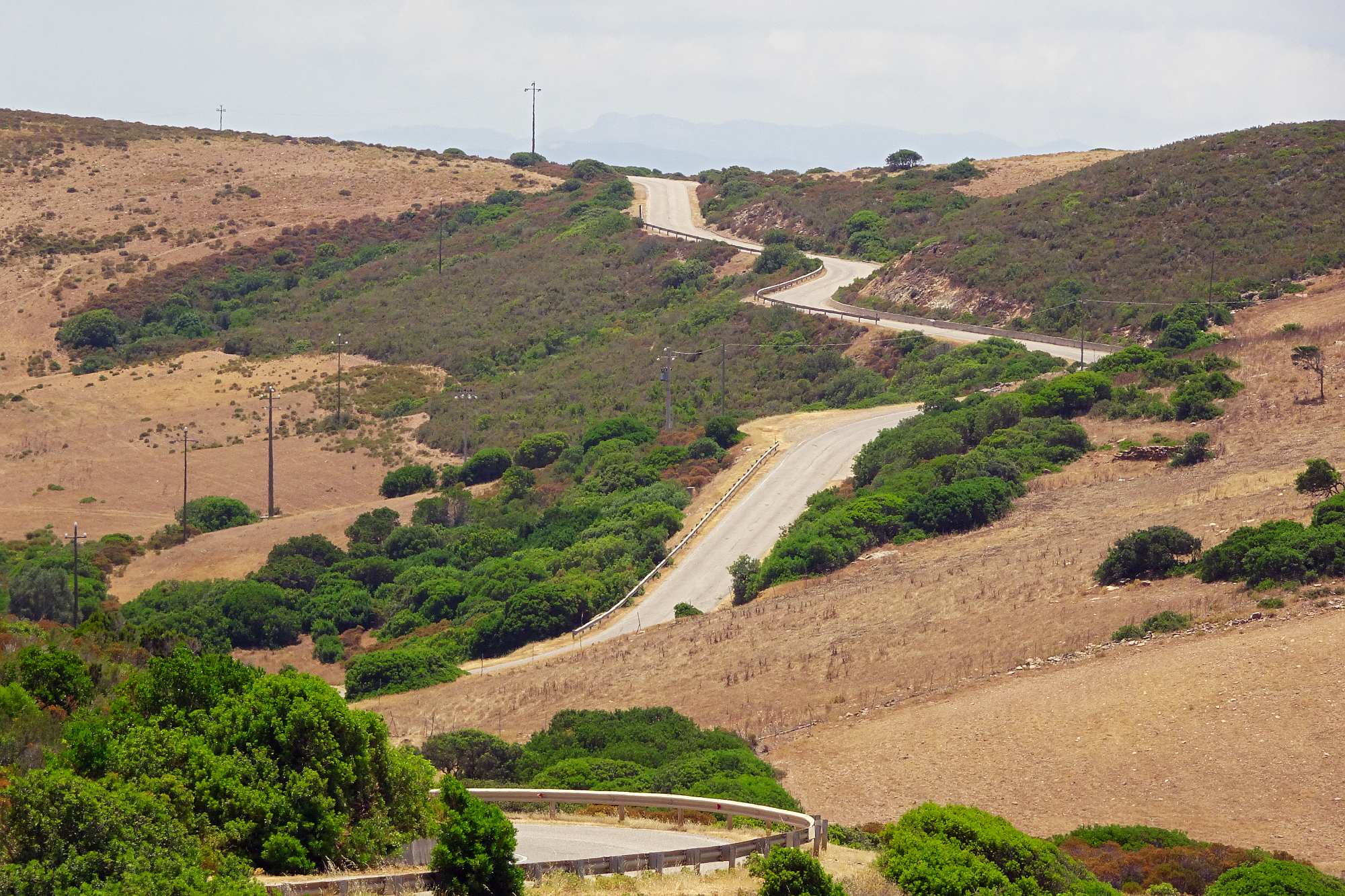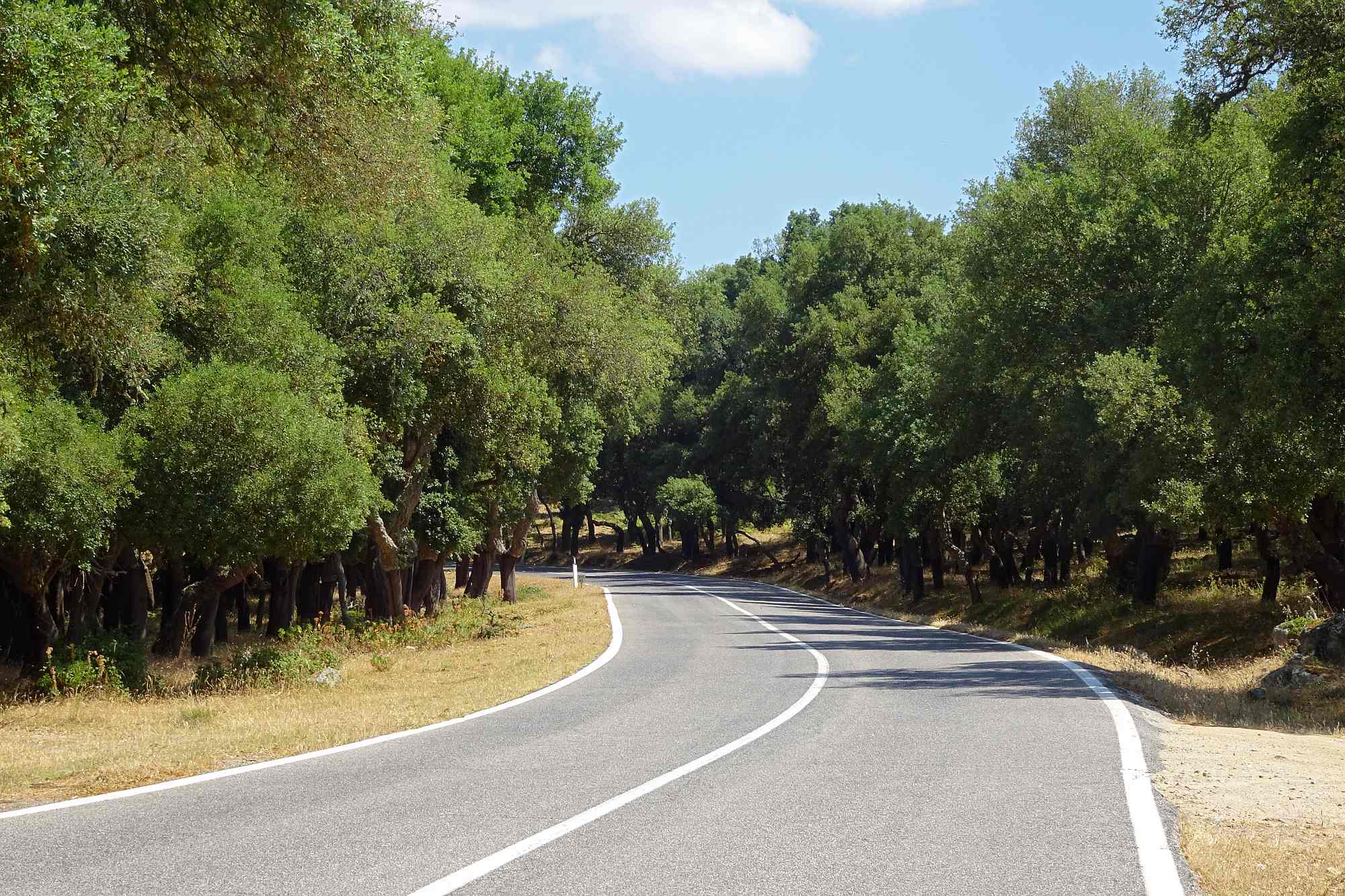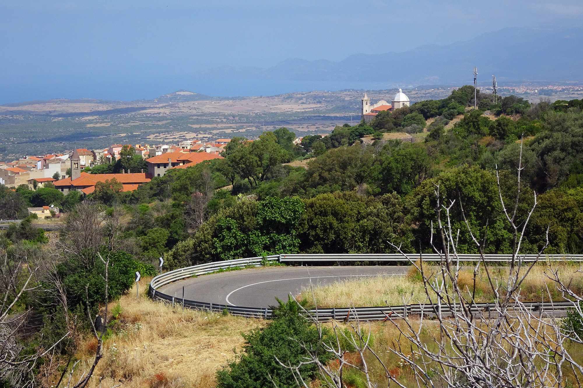 Die heutige Etappe war schon recht besonders: Zuerst mal kamen wir von Bosa über eine wunderbar flotte und perfekt asphaltierte Straße recht rasch in kühlere Höhen. Und dann zog sich ein Provinzsträßchen Kurve um Kurve durch eine leicht bergige Landschaft, vorbei am Städtchen Cuglieri und am Monte Ala bis hinunter nach Santu Lussurgiu.