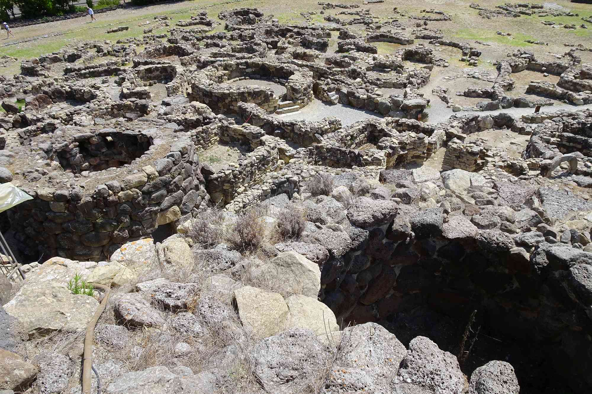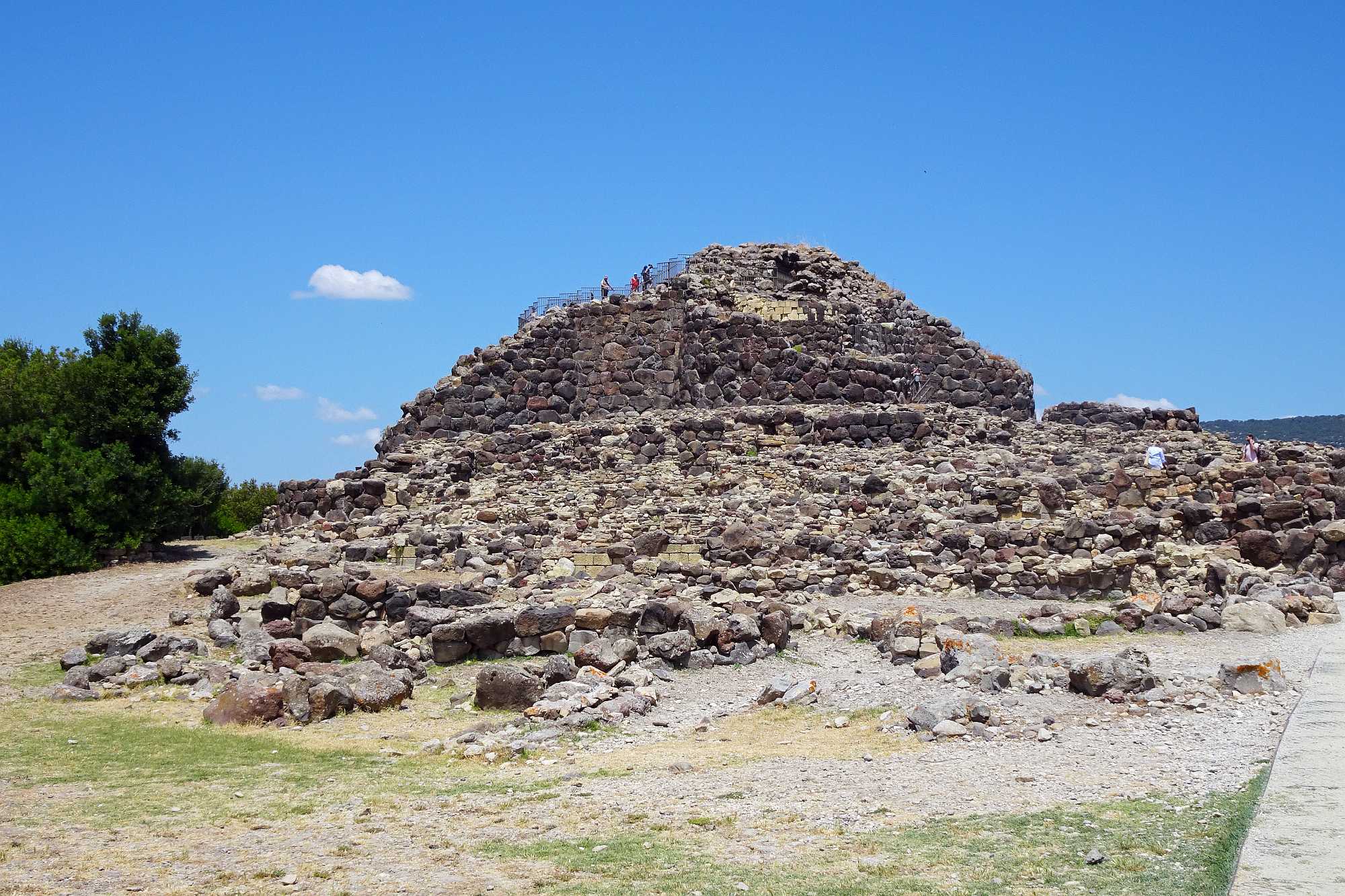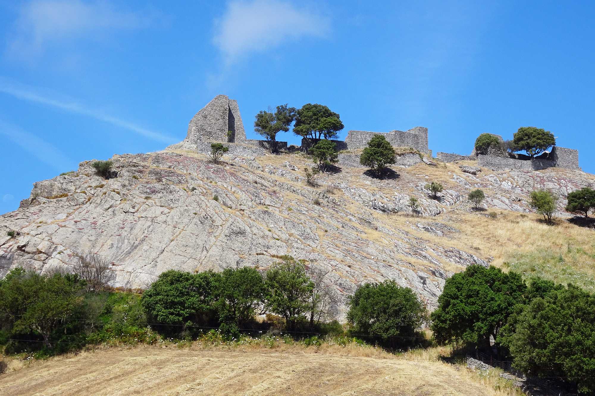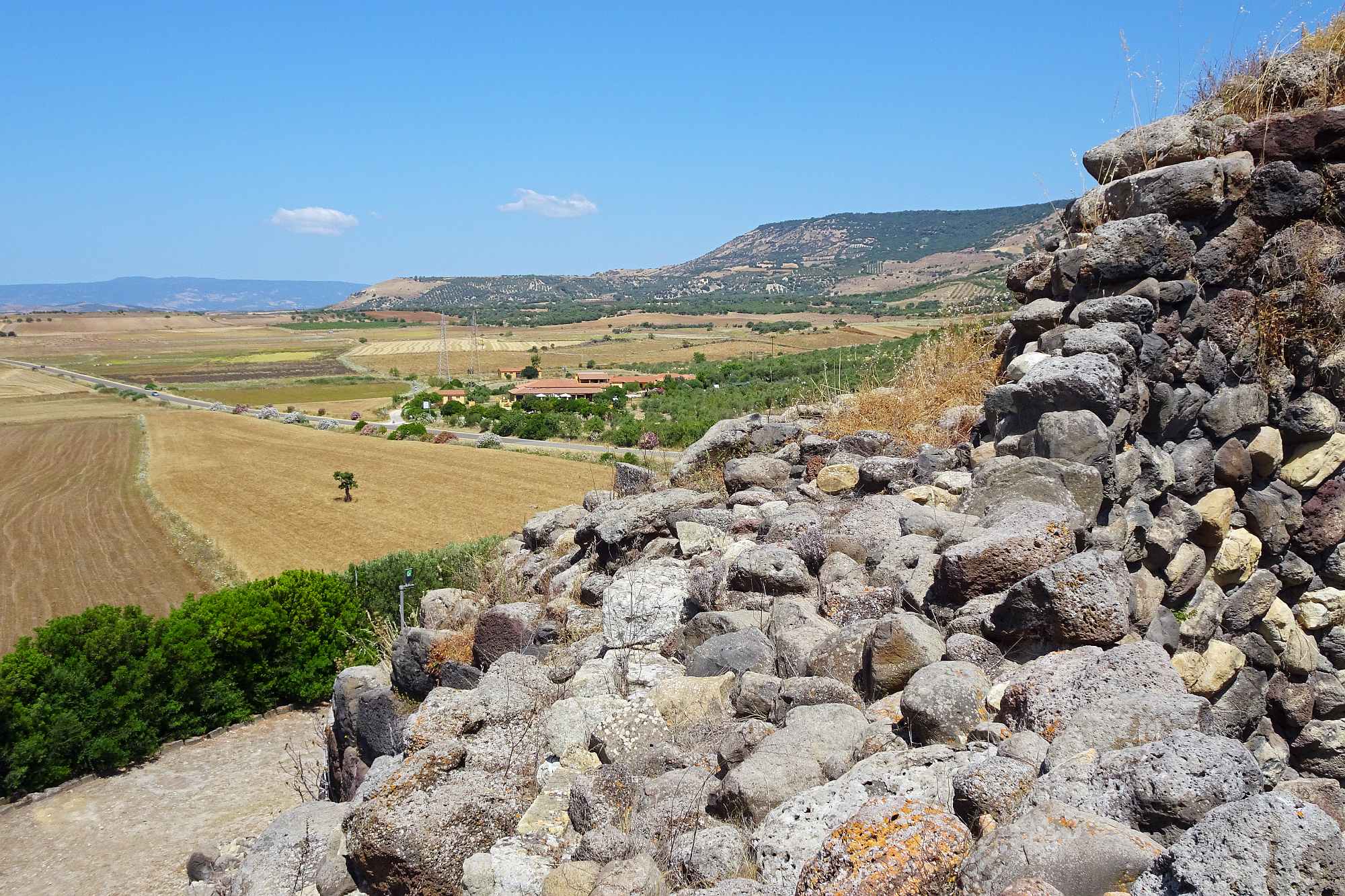 Zuerst mal mussten wir an diesem Tag die Ebene hinter uns bringen, um wieder in höhere Gefilde zu gelangen. Allerdings hatten wir ja auch geplant, den Nuraghenkomplex von „Su Nuraxi“ zu besuchen. Ein schweißtreibendes, aber durchaus lehrreiches Unterfangen, die Führung war jedenfalls interessant und ein wenig abenteuerlich, auf jeden Fall auch spaßig „and nothing“.