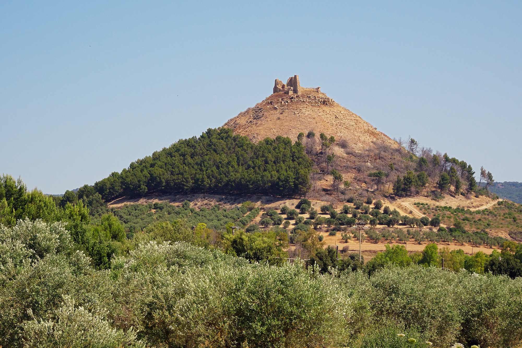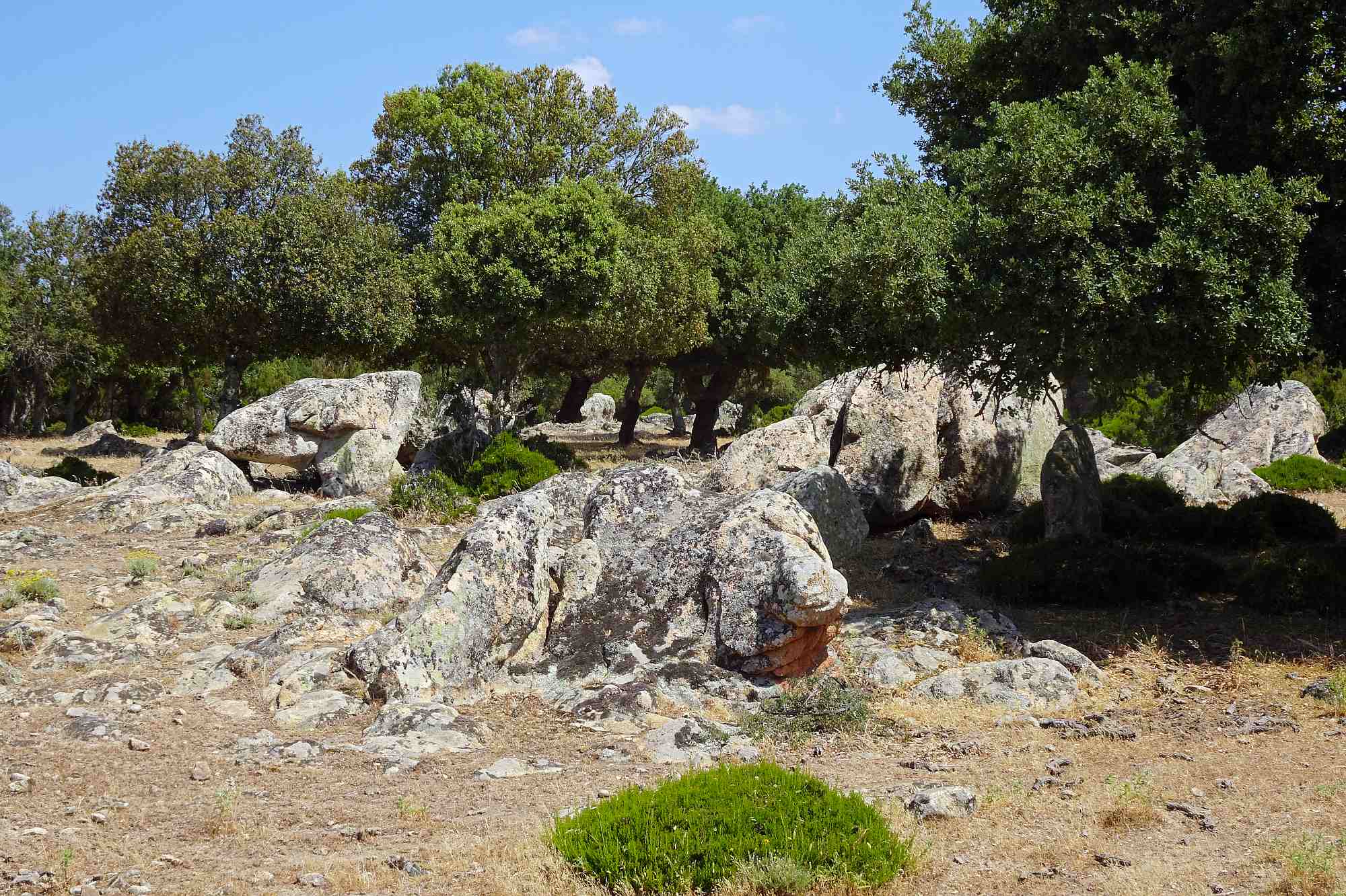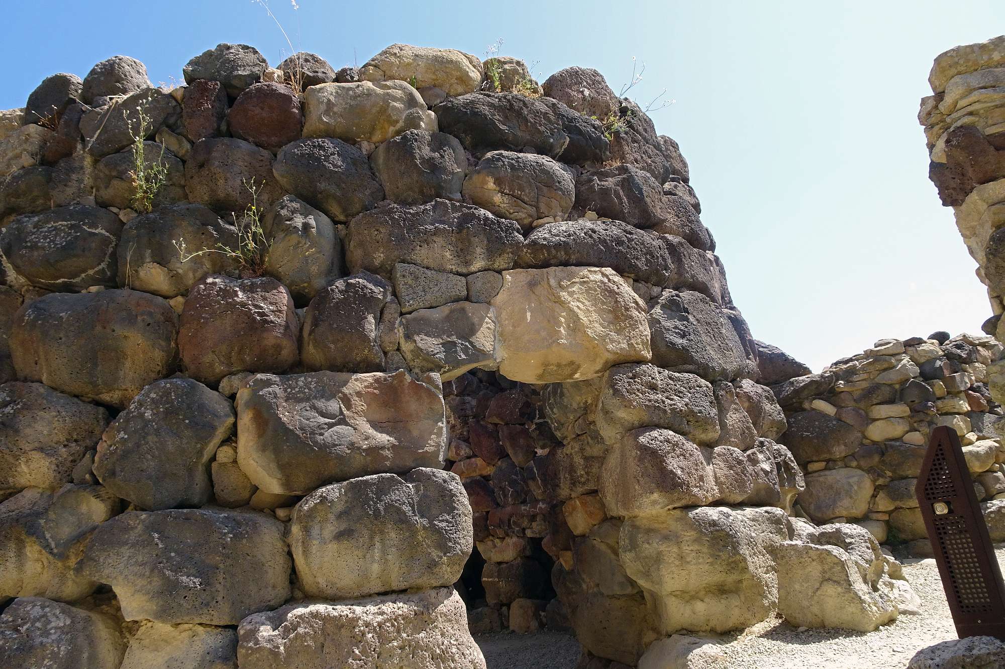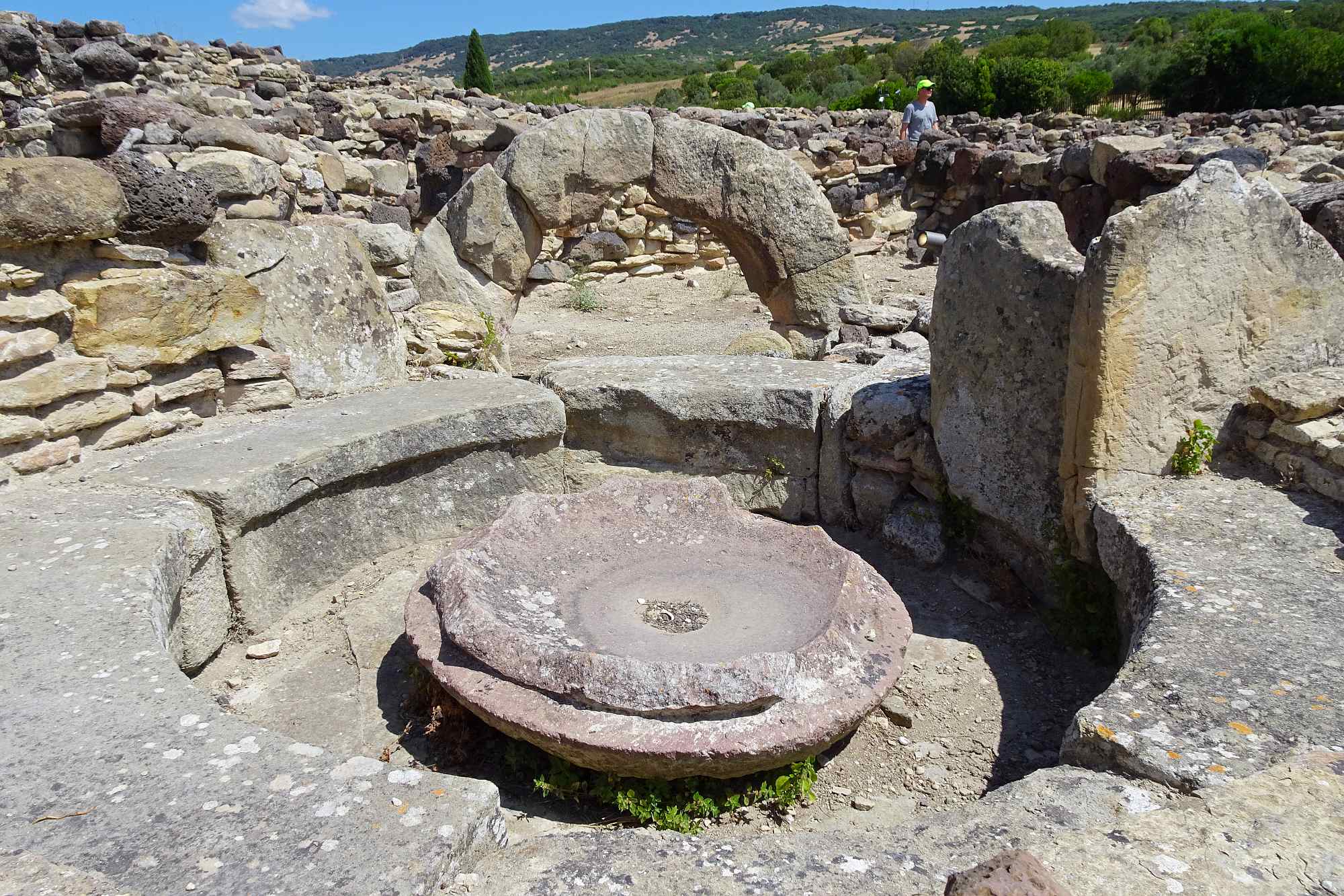 Zuerst mal mussten wir an diesem Tag die Ebene hinter uns bringen, um wieder in höhere Gefilde zu gelangen. Allerdings hatten wir ja auch geplant, den Nuraghenkomplex von „Su Nuraxi“ zu besuchen. Ein schweißtreibendes, aber durchaus lehrreiches Unterfangen, die Führung war jedenfalls interessant und ein wenig abenteuerlich, auf jeden Fall auch spaßig „and nothing“.