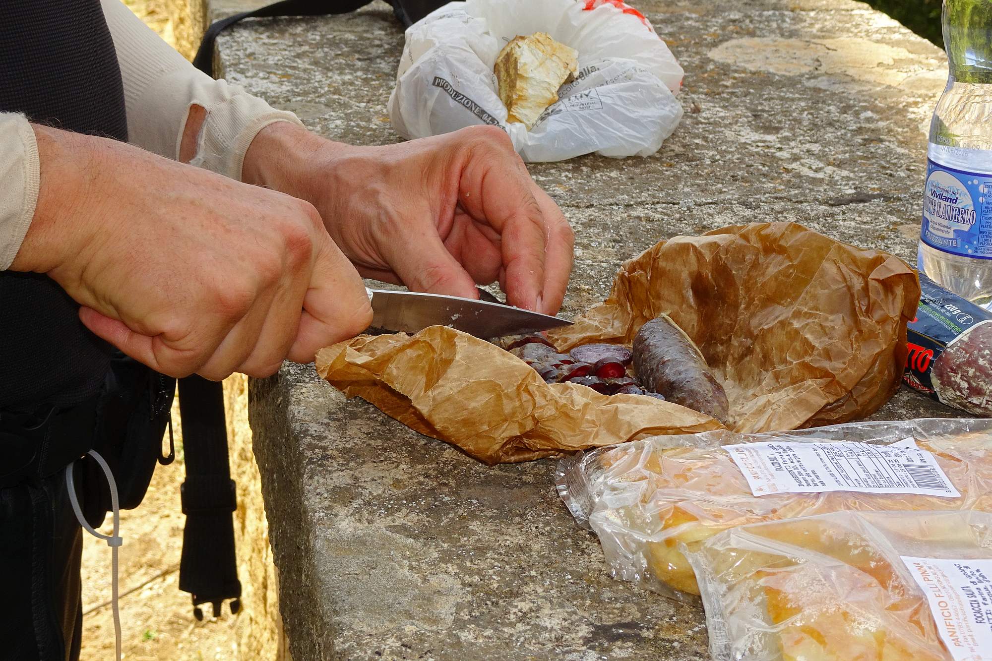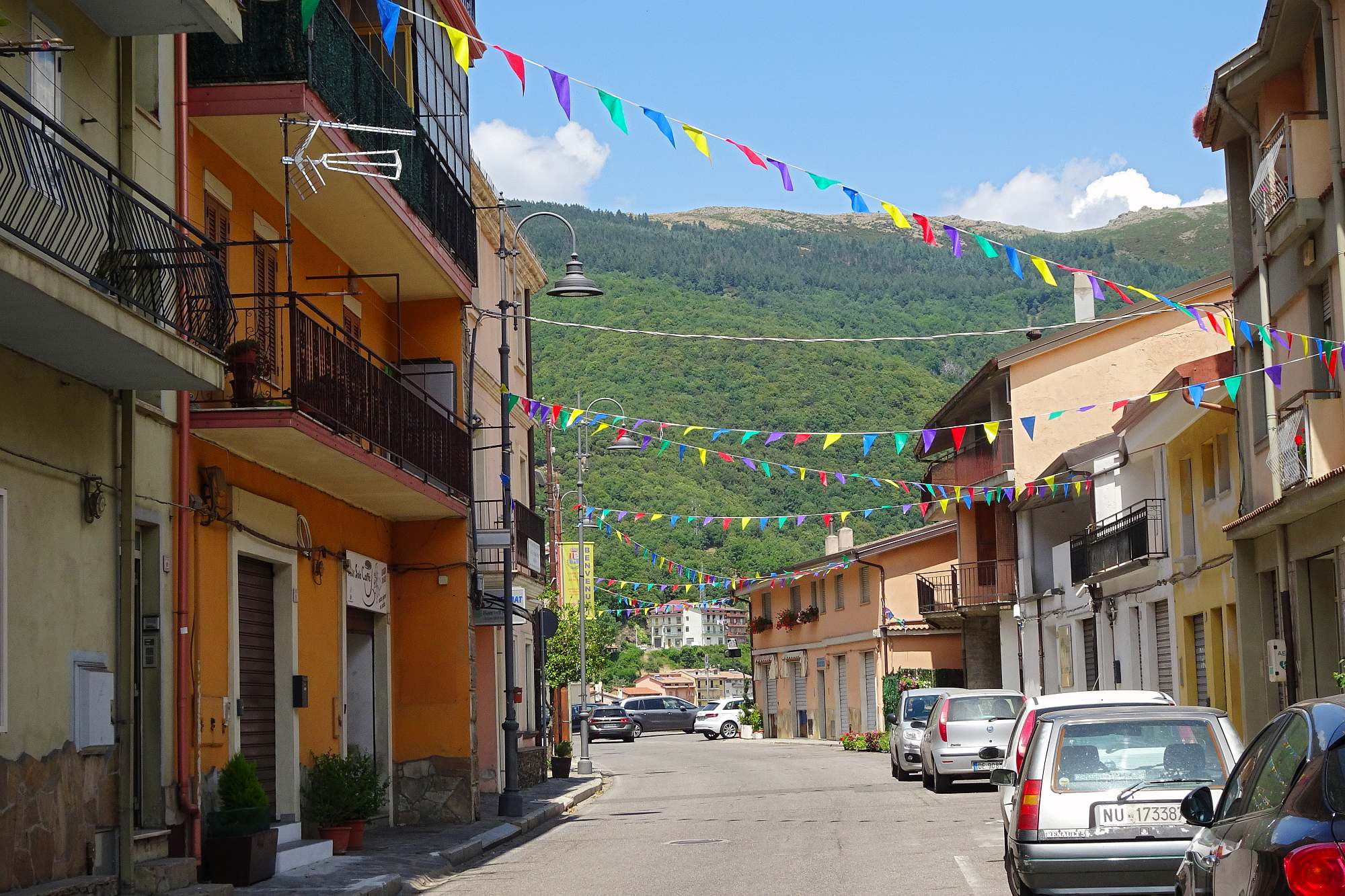 Danach folgte ein etwas abenteuerlicher, aber dann auch wieder langweiliger Ritt über Osidda bis hinauf in das Dörfchen Bono. Am Hauptplatz, bei einem gemütlichen Espresso, durften wir dem Aufbau einer – für dieses Dörfchen ziemlich riesigen – Bühnenanlage beiwohnen.